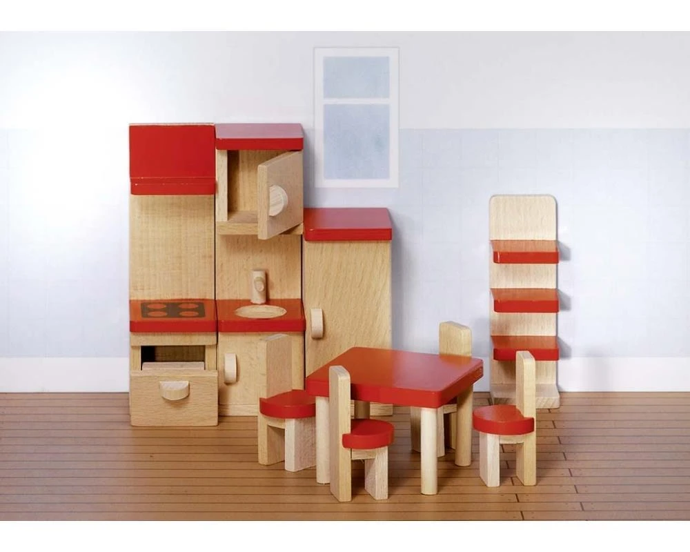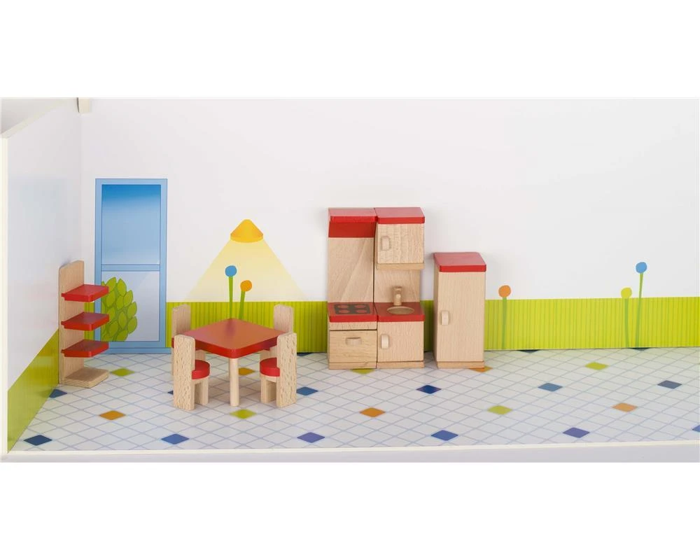 Komplettes Puppenmöbelset der goki basic Einstiegsserie im klassischen Design. Passend zu allen goki-Puppenhäusern. Herd H= 14,3 cm