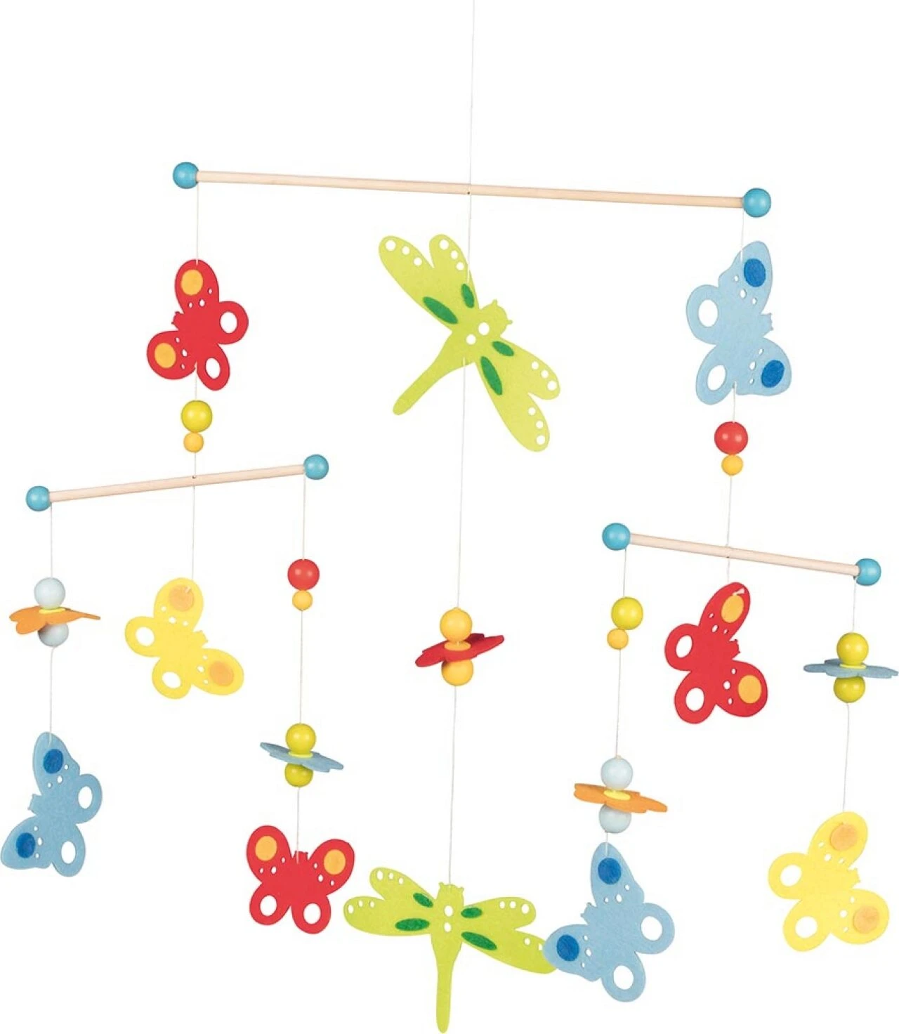 All die kleinen farbenfrohen Flugobjekte, die wir so lieben, wenn sie im Frühjahr und Sommer über Beete und Wiesen flattern, bringt dieses Mobile ins Kinderzimmer. Der Filz ist hierfür das absolut geeignetste Material.