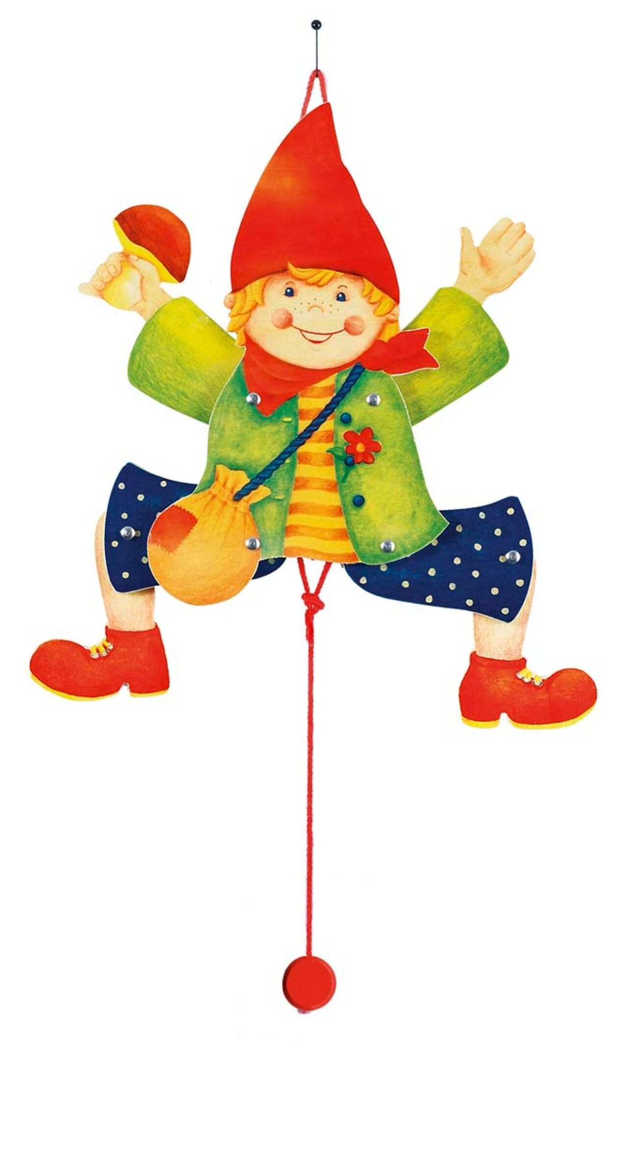 Da ist Bewegung drin! Wird am Band gezogen hebt der Junge Hände und Füße.