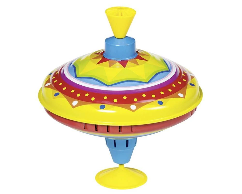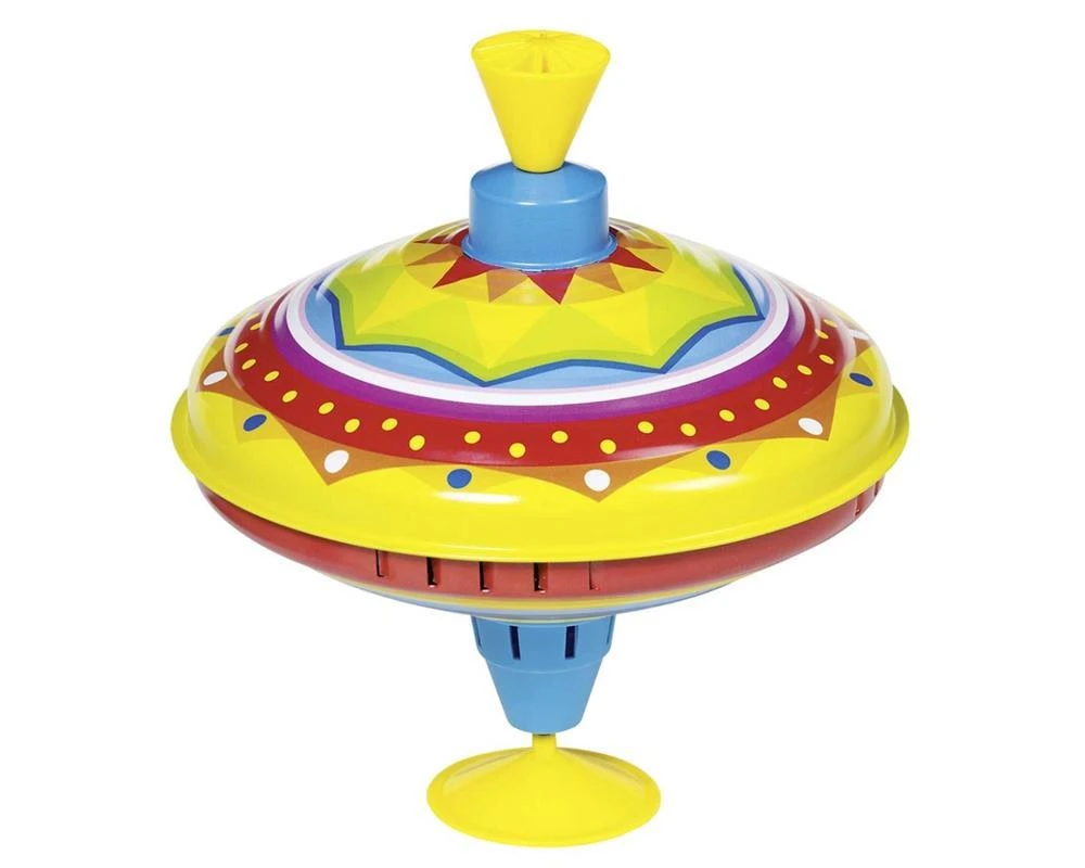 Klassische Brummkreisel aus hochwertigem Blech. Einfach den Knauf hoch und runter bewegen und schon beginnt der Kreisel sich schnell zu drehen und angenehm zu brummen.