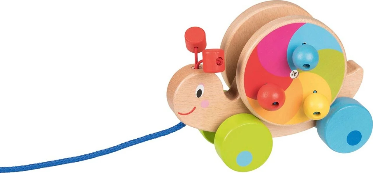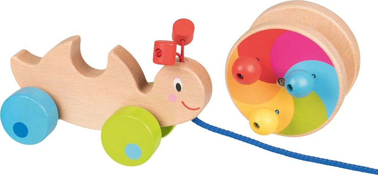 Eine Nachziehschnecke, die an den höchsten Ansprüchen gerecht wird. Gefertigt aus massivem Buchenholz, hochwertig verarbeitet, mit einer sehr durchdachten Farbgestaltung, die die Bewegung der Drehscheiben hervorragend optisch unterstützt. Die Holzperlen sorgen für einen angenehm zurückhaltenden Klang. Ein absolut verlässlicher Partner auf den ersten Wegen eines Kindes.