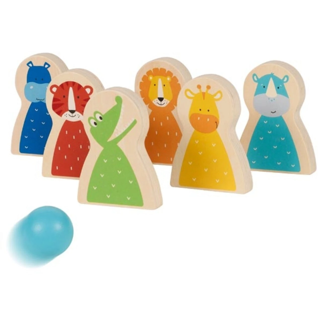 Das Kegelspiel Wilde Tiere kann fast überall und zu jeder Jahreszeit gespielt werden. Im Garten, auf ebenen Sandwegen, auf der Terrasse, aber auch im Wohnungsflur sind die sechs bunten Figuren schnell aufgebaut und schon kann das Kegelspiel beginnen. Schon ab zwei Mitspielern kann die lustige Kegelpartie starten. Zu dem Spiel gehören sechs lustige Kegelfiguren und drei Kugeln aus massivem Holz.
