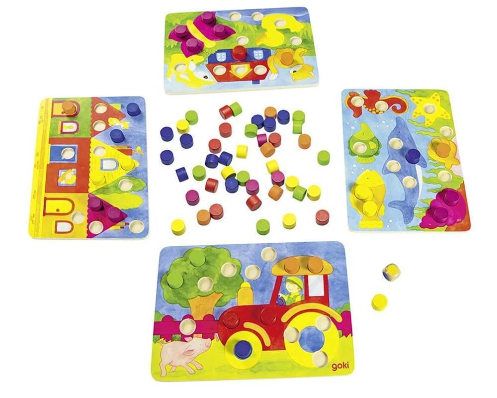 Wer vervollständigt durch Erwürfeln der passenden Farben als Erster sein eigenes Bild? Dieses Würfelspiel fördert die richtige Zuordnung von Farben.