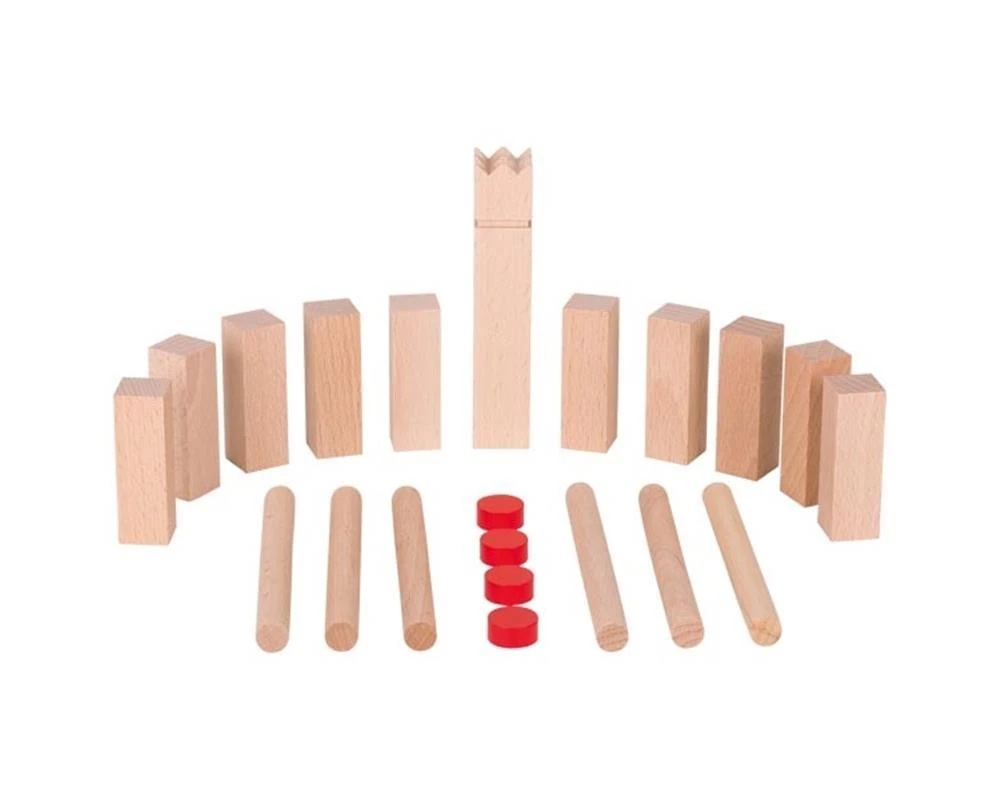 Schach spielen wie die Wikinger im eigenen Kinderzimmer! Bei der Indoorversion ist Geschicklichkeit gefragt, um alle Kubbs des Gegners umzuwerfen und anschließend den König zu besiegen. Verpackt im Baumwollbeutel kann es überall mit hingenommen werden. König H= 2,3 x 2,3 x 12 cm