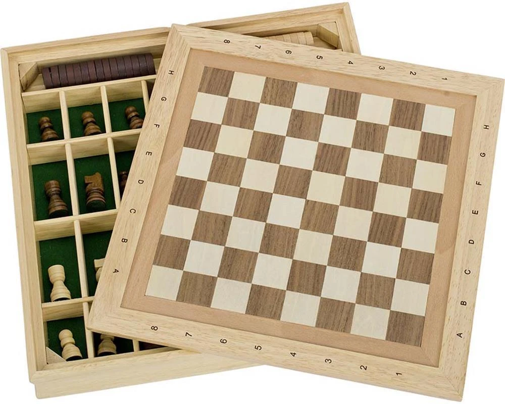 Hochwertige Spielesammlung – mit Schach, Dame und Mühle.