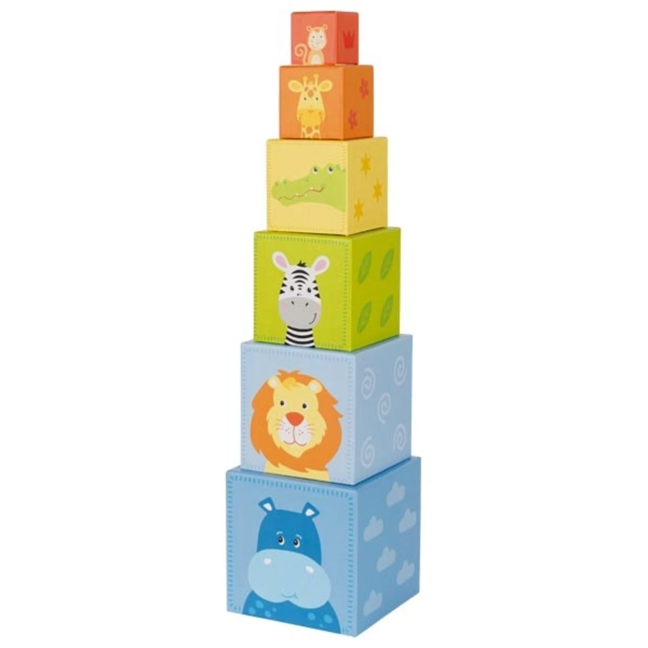 6 unterschiedlich große Würfel aus stabilem Karton, bedruckt mit kunterbunten Motiven, fördern Kreativität und Feinmotorik. Außerdem lernen Kinder die verschiedenen Größenverhältnisse kennen.