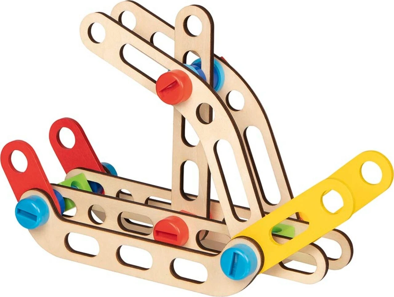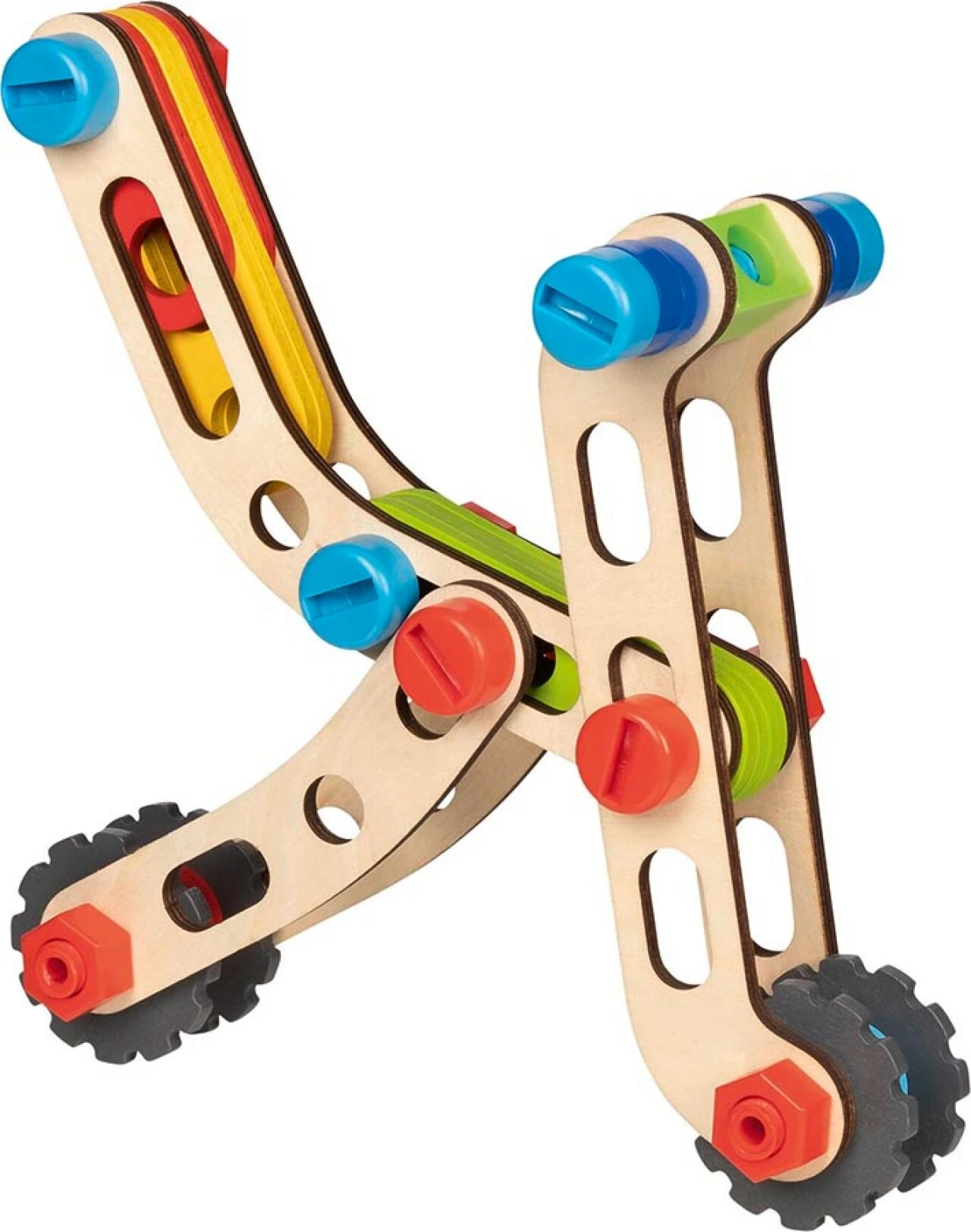 Mit Hilfe des 59-teiligen Bauteile- und Werkzeugsets aus Holz lassen sich zahlreiche Fahrzeuge zusammenschrauben. Ein Muss für alle bastelbegeisterten Einsteiger. Der Koffer ist nicht nur dekorativ, sondern soll in erster Linie dabei helfen, dass keine Teile verloren gehen, damit der kleine Schrauber seine Leidenschaft ungetrübt lange ausleben kann. Inklusive Anleitungen für sieben Fahrzeuge.