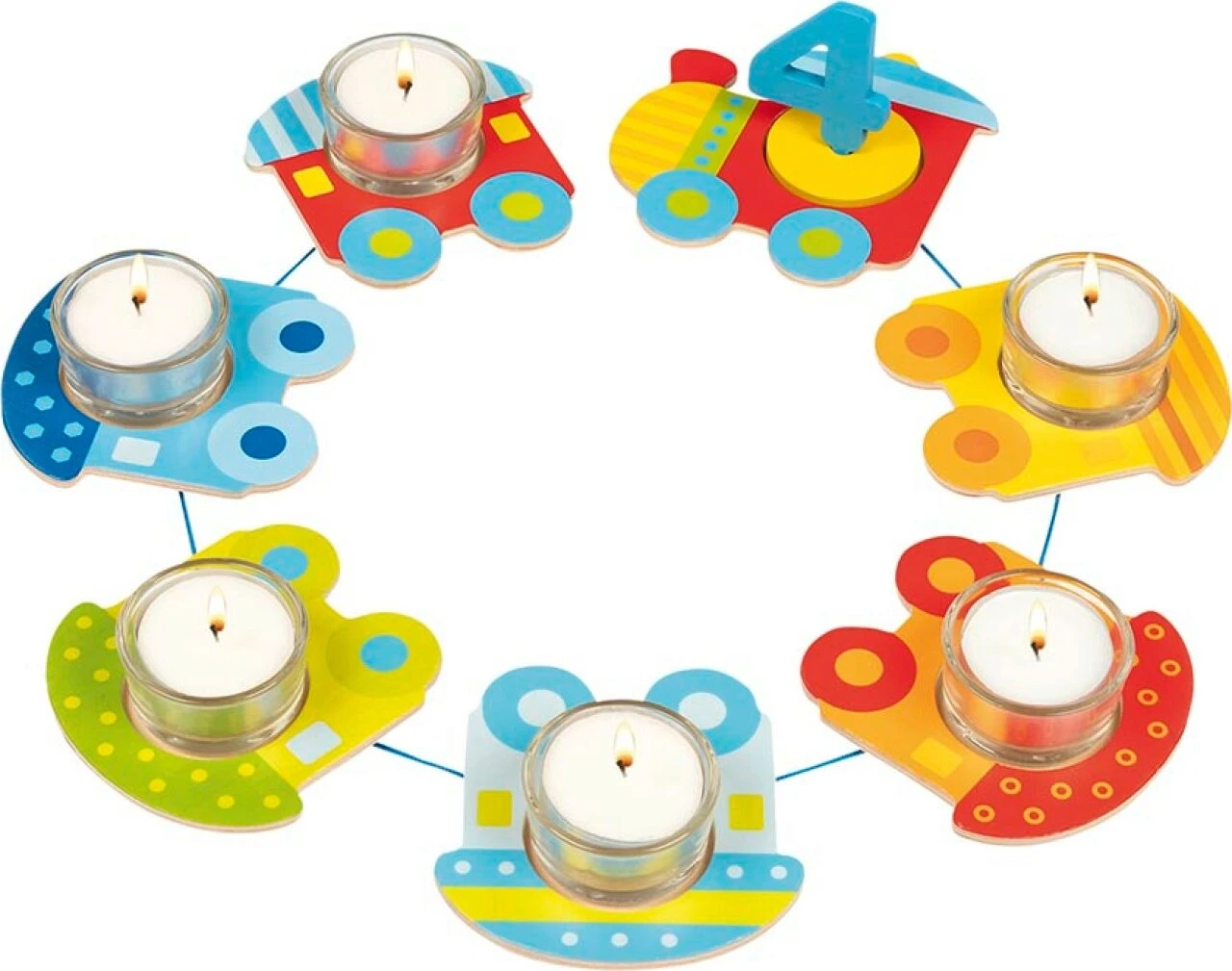 Geburtstag ist doch nur einmal im Jahr und da sollte die Tischdekoration für das Geburtstagskind fröhlich und kindgerecht ausfallen. Dieser Geburtstagszug aus Holz mit den Teelichteinsätzen aus Glas ist standsicher, wunderschön gestaltet und steht dank seiner mitgelieferten Zahlen von eins bis zehn für einen vieljährigen Einsatz bereit.