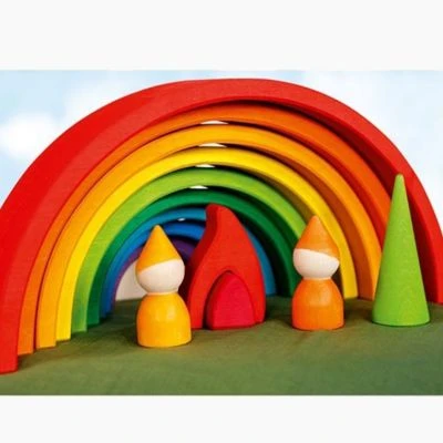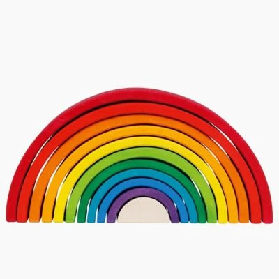 Mit diesem fröhlichen Regenbogen aus Ahornholz lässt es sich stapeln und sortieren, während spielerisch Größen, Reihenfolgen und Farben gelernt werden. Dem Erbauen von zauberhaften Welten im offenen Spiel sind keine Grenzen gesetzt – einfach ein Klassiker unter den Holzspielzeugen.
