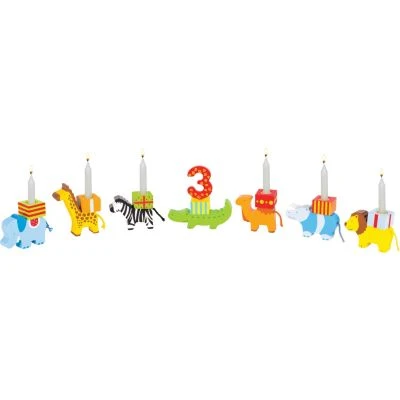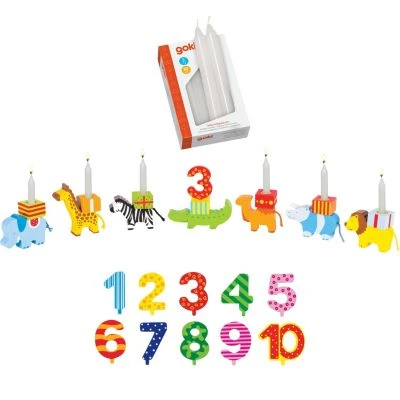Die Tierparade macht sich auf den Weg zu deinem Geburtstag. Während die jeweilige Zahl (1 bis 10) schon mit dabei ist, können die restlichen Tiere noch zusätzlich mit Kerzen dekoriert werden.
