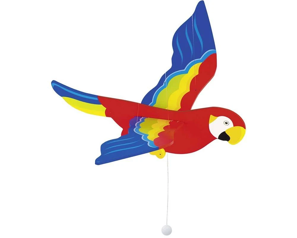 Mit einer Spannweite von 50 cm kreist der bunte Papagei über dem Kinderbett. Spannweite 50 cm