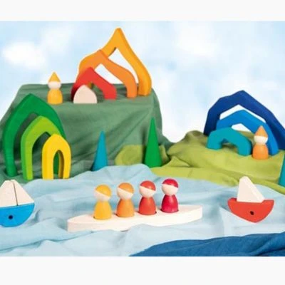 Die liebevoll gestalteten Figuren werden aus Ahornholz gefertigt und sind Made in Europe. Durch ihr neutral gehaltenes Äußeres regen sie die Phantasie an und sind bestens geeignet für freies Spielen – ihren Charakter bekommen sie durch ihre jeweils individuelle Holzstruktur und die leuchtende Lasierung. Wollen die vier Freunde aus Holz mit ihrem Boot ankern, findet sich mit goki evolution eine Welt voller Möglichkeiten für kleine Abenteurer: ein Besuch im Zwergenhaus oder doch vielleicht ans Ende des Regenbogens?