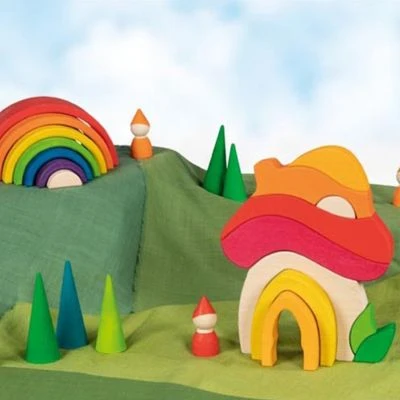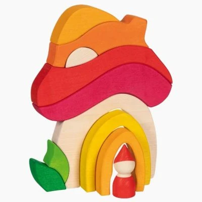 Das liebevoll gestaltete Pilzhäuschenist aus Ahornholz gefertigt und ist Made in Europe.Organische Formen bilden die Welt von goki evolution. Die Holzbausteine fördern die Kreativität und das freie Spiel. Und sind so das Tor zu einer Welt voller Möglichkeiten. Bilden die Holzbausteine einen Pilz, ist es gar ein Häuschen oder doch etwas ganz anderes? Bestes Holzspielzeug lässt Raum für die eigene Phantasie. Und so bedeutet goki evolution auch Vielfalt und Veränderung. Die Holzbausteine werden aus Ahornholz in Europa gefertigt. Das mehrteilige Haus regt die Phantasie an und lässt sich nach Belieben stapeln und sortieren, um wunderbare Welten zu erschaffen. goki evolution ist bestens geeignet für freies Spielen. Seinen Charakter bekommt das pädagogische Spielzeug durch die individuelle Holzstruktur und die leuchtende Lasierung. goki evolution bietet eine Welt voller Möglichkeiten für kleine Abenteurer: vielleicht kommt Besuch von den Freunden im Boot und man macht zusammen eine Reise ans Ende des Regenbogens.