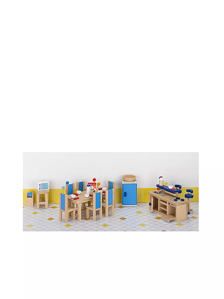 Moderne Puppenmöbel mit detailverliebten Accessoires. Passend zu allen goki-Puppenhäusern.