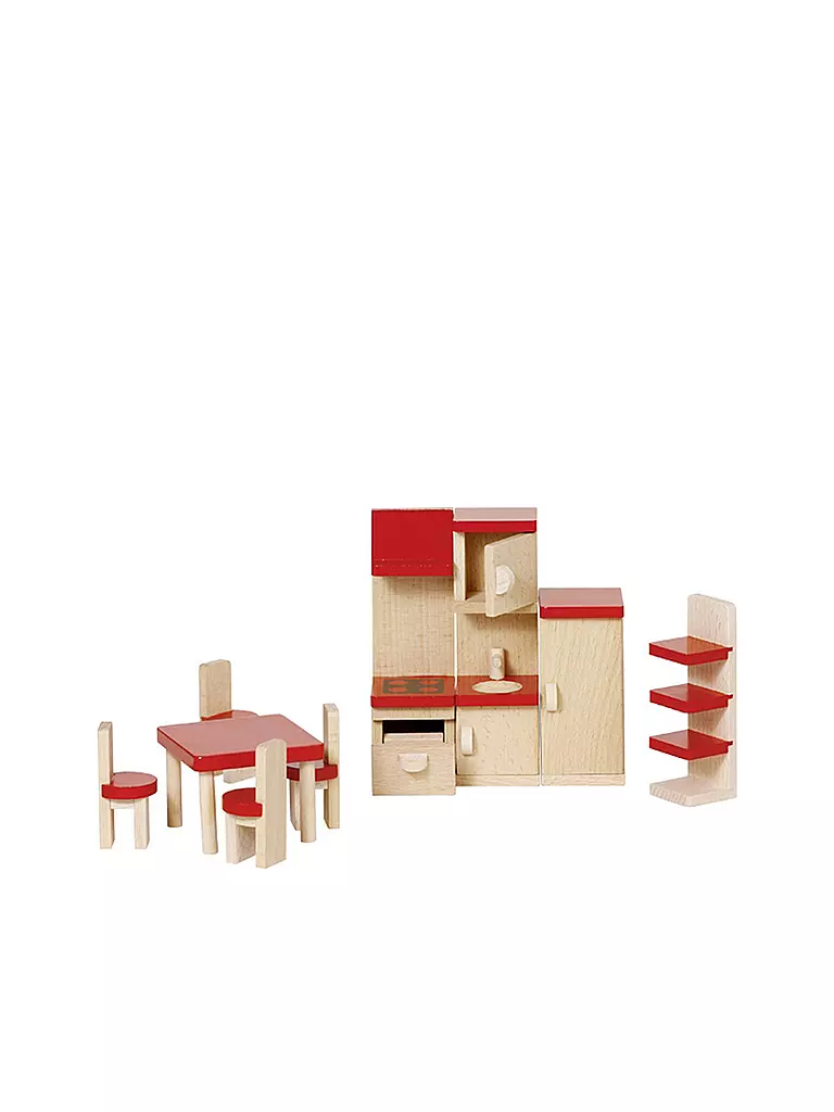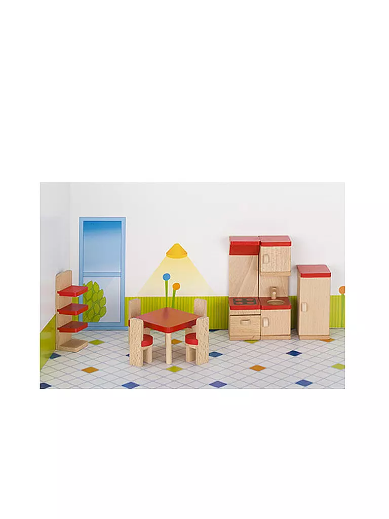 Komplettes Puppenmöbelset der goki basic Einstiegsserie im klassischen Design. Passend zu allen goki-Puppenhäusern.