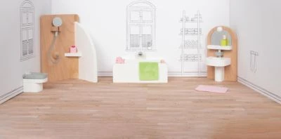 Mit diesem tollen Puppenmöbelset aus der „Style“-Kollektion von goki können Kinder ihr Puppenhaus besonders hübsch einrichten! In dem Set sind eine Dusche, eine Badewanne, ein Waschbecken, eine Toilette und weiteres Zubehör enthalten, sodass das Badezimmer im Nu optimal ausgestattet ist. So haben Kinder noch mehr Freude an ihrem Puppenhäuschen!