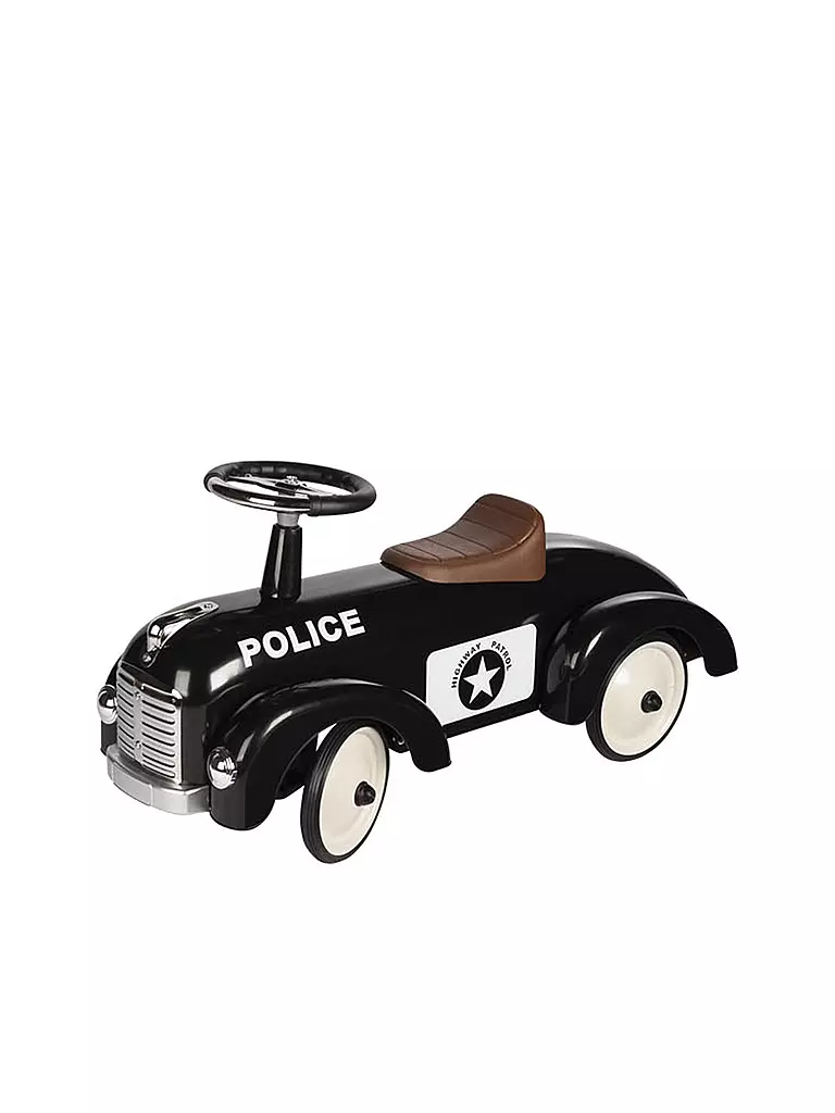 Dieses Polizei-Rutscherauto aus Metall mit Gummibereifung setzt auf die Fitness seines Fahrers bei den wilden Verfolgungsjagden. Besonders an Steigungen ist Beinarbeit gefragt. Ein Spielzeug für hunderte schöne Spielstunden und lebenslange Kindheitserinnerungen.