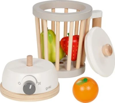 In der Kinderküche wird gewerkelt – was gibt es denn heute? Birne, Erdbeere und Orange liegen schon bereit. Mit dem Spieleset „Standmixer“ von goki kommt alles, was die kleinen Köch*innen brauchen, um einen köstlichen Smoothie zuzubereiten. Der Standmixer hat einen praktischen Drehknopf und punktet mit einem abnehmbaren Behälter und Deckel. Die köstlichen Holzfrüchte können, dank Klettverbindung auch halbiert und zu einem leckeren Getränk gemixt werden. Für fröhliche (Rollen-) Spielmomente in der Kinderküche ist mit diesem Spieleset aus Holz gesorgt.