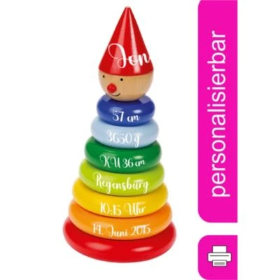 Nimo, der Stapelturm mit dem lustigen Gesicht und den fröhlichen Farben.