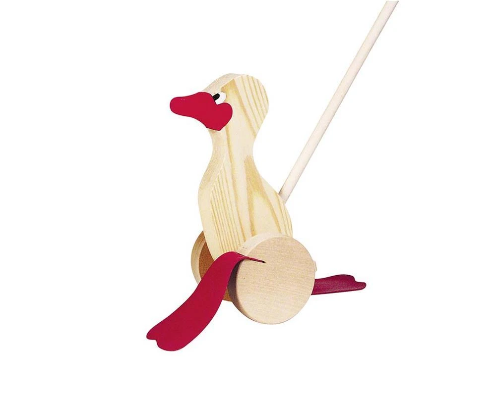 Wird das Tier geschoben watschelt es lustig voran und animiert so zum Laufen.