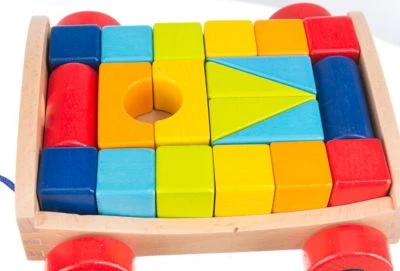 – Ziehwagen aus Holz mit farblich abgesetzten Rädern